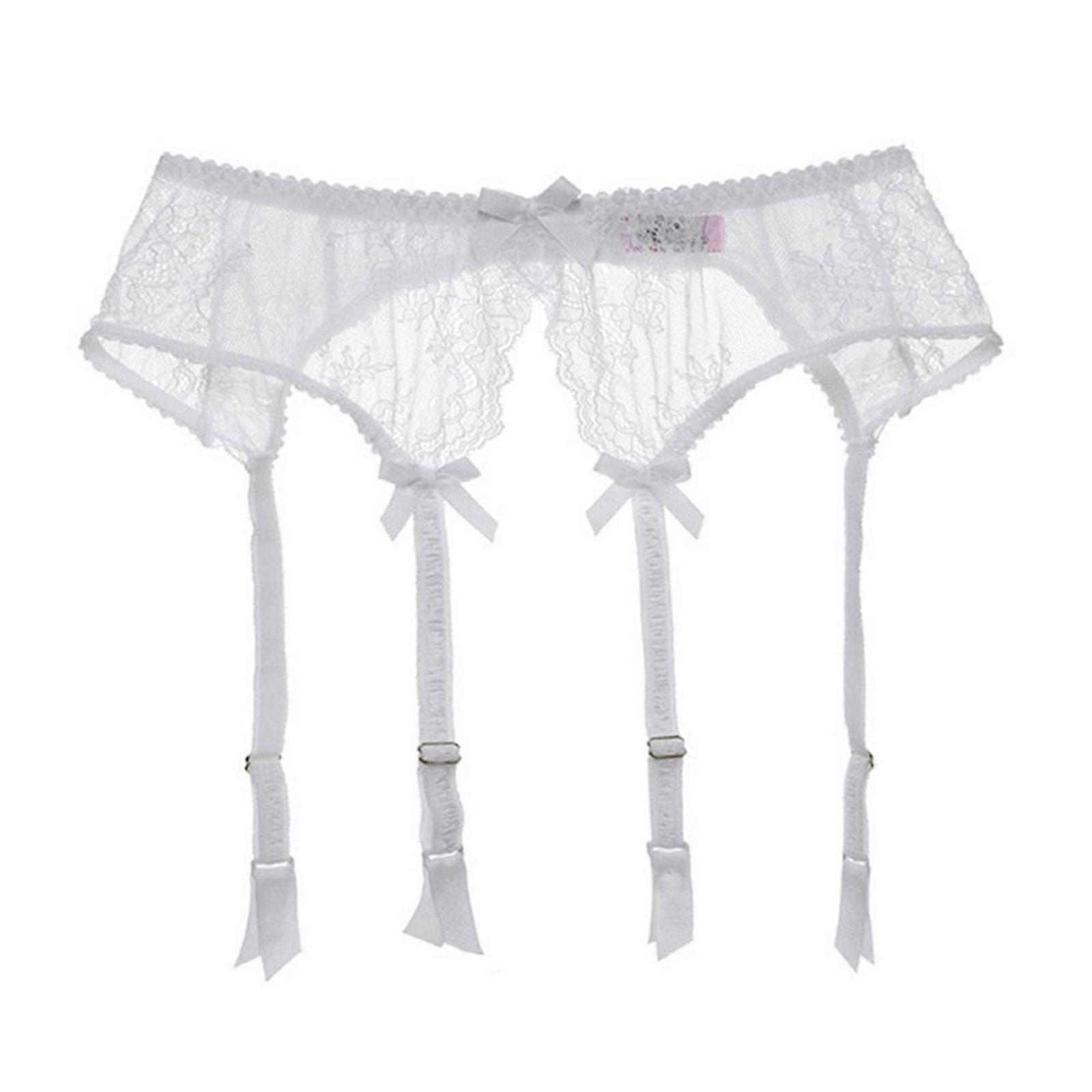 Womens High Waist Bowknot Garter Belt Sexy See Through Flower Lace Suspender Belt with 4 Clip for Thigh High Stockings S White