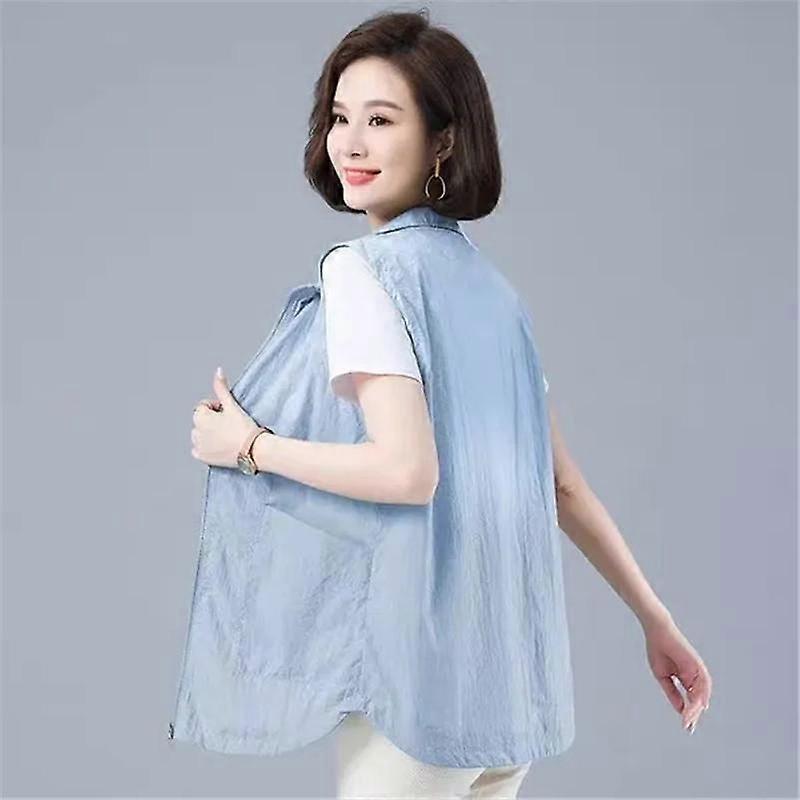 Women Casual Thin Pink Vest Summer Liner Sun Protection Clothes Large Size Sleeveless Jacket Short Zipper Waistcoat