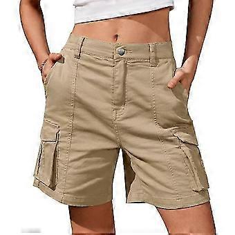 Women Shorts High Waist Wide Leg Knee Length Button Zipper Fly Pure Color Elastic Waist Multi Pockets Deep Crotch Loose Thin Quick Dry Lady