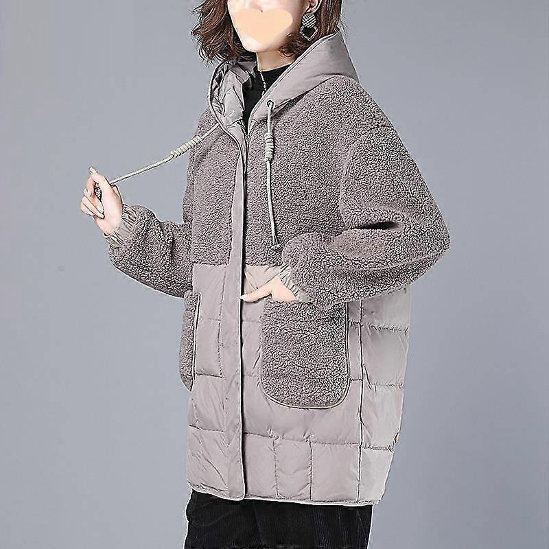 Women Padded Jackets Autumn Winter Hooded Outerwear Loose Down Cotton Jacket Mid-Length Lamb Wool Thick Coat Female