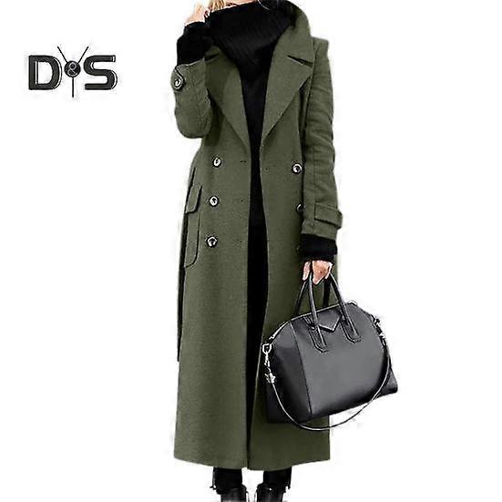 Women Overcoat Double-breasted Turn-down Collar Cardigan Mid-calf Length Long Sleeves Jacket with Pockets Slim Fit OL Commuting Formal Coat