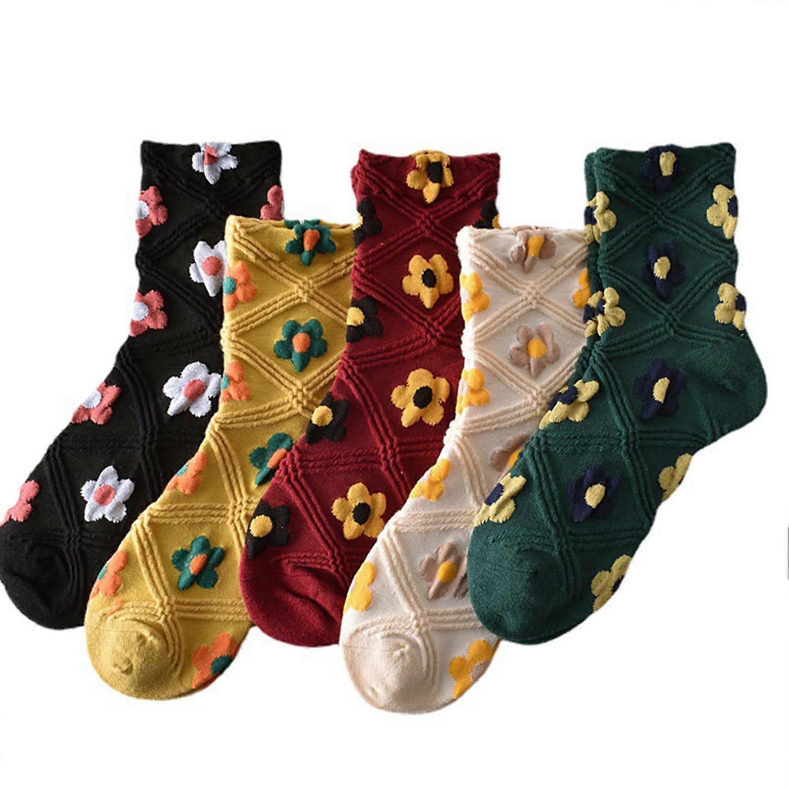 Women Above Ankle Crew Socks 10 Pairs Japanese-style Cotton Socks with Relief Pattern for Winter Daily Wear Party Costume