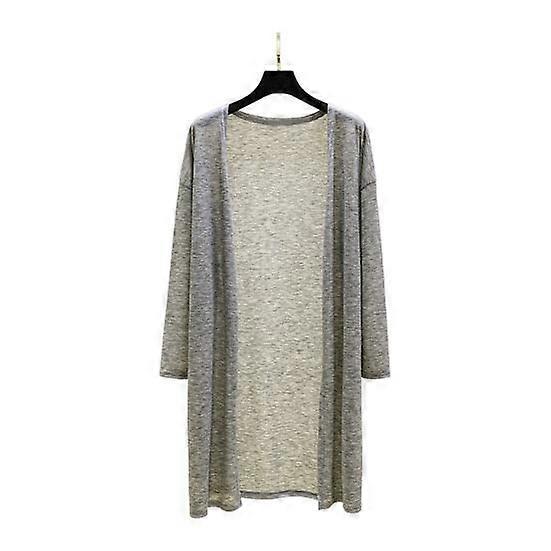Women Casual Color Thin Open Stitch Long Sleeve Mid-length Cardigan Solid Coat Collarless Sun Protection Coat