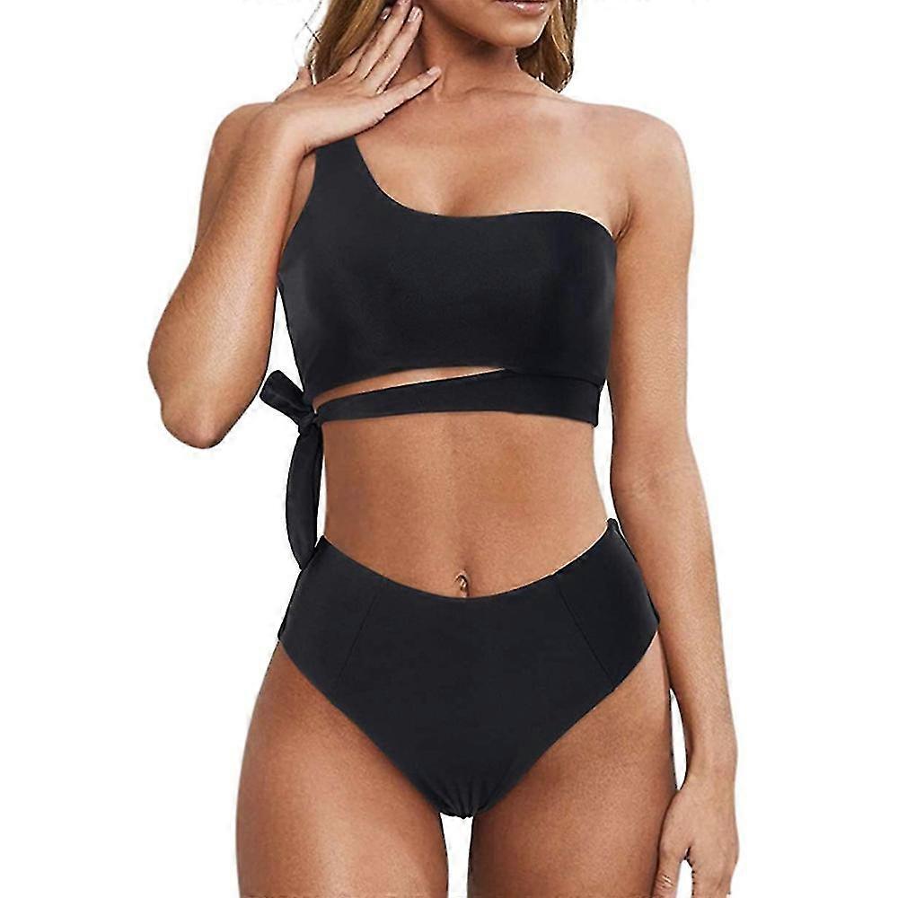 Women Padded Bikini Set One Shoulder Bra Top High Waist Briefs Lace-up Swimsuit Summer Beach Sexy Swimwear