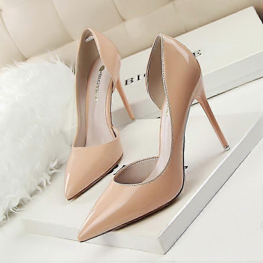 Women Pumps Elegant Pointed Toe Patent Leather Office Lady Shoes