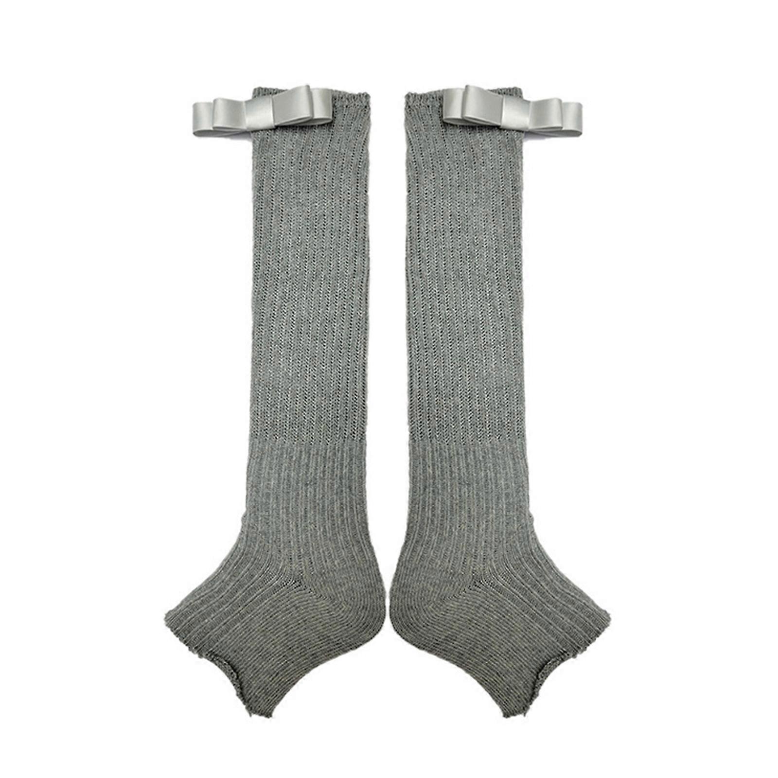 Women Teen Girls Ribbed Knit Solid Color Gray Leg Warmer Aesthetic Elegant Sweet Bowknot Footless Calf Socks Leg Covers