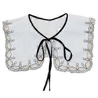 Women Navy Style Square Big Shawl Fake Collar Hollow Out Embroidery Floral Trim Necklace Scarf Contrast Color Capelet