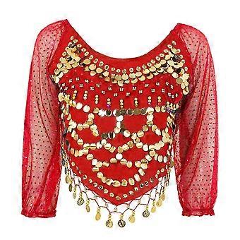 נשים נצנצים שרוול ארוך ריקודי בטן צמרות עניבה עצמית גב מכפלת לא סדירה שיפון קרופ טופ רייב קרנבל פסטיבל תחפושת למסיבה
