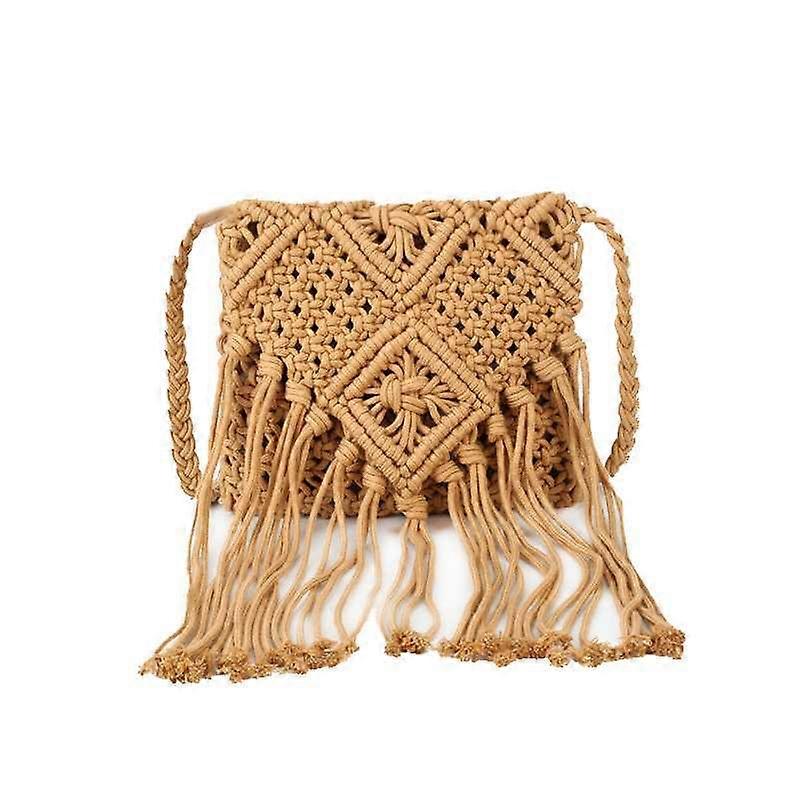 Women Ladies Boho Woven Handbag Summer Beach Cotton Tassel Bag Rattan Shoulder