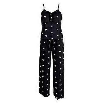 נשים סט פיג'מות סאטן לב דפוס תחרה ללא שרוולים קשת אלסטי מותן מכנסיים מכנסיים עליונים חליפה ליידי קיץ בגדי שינה טרקלין