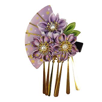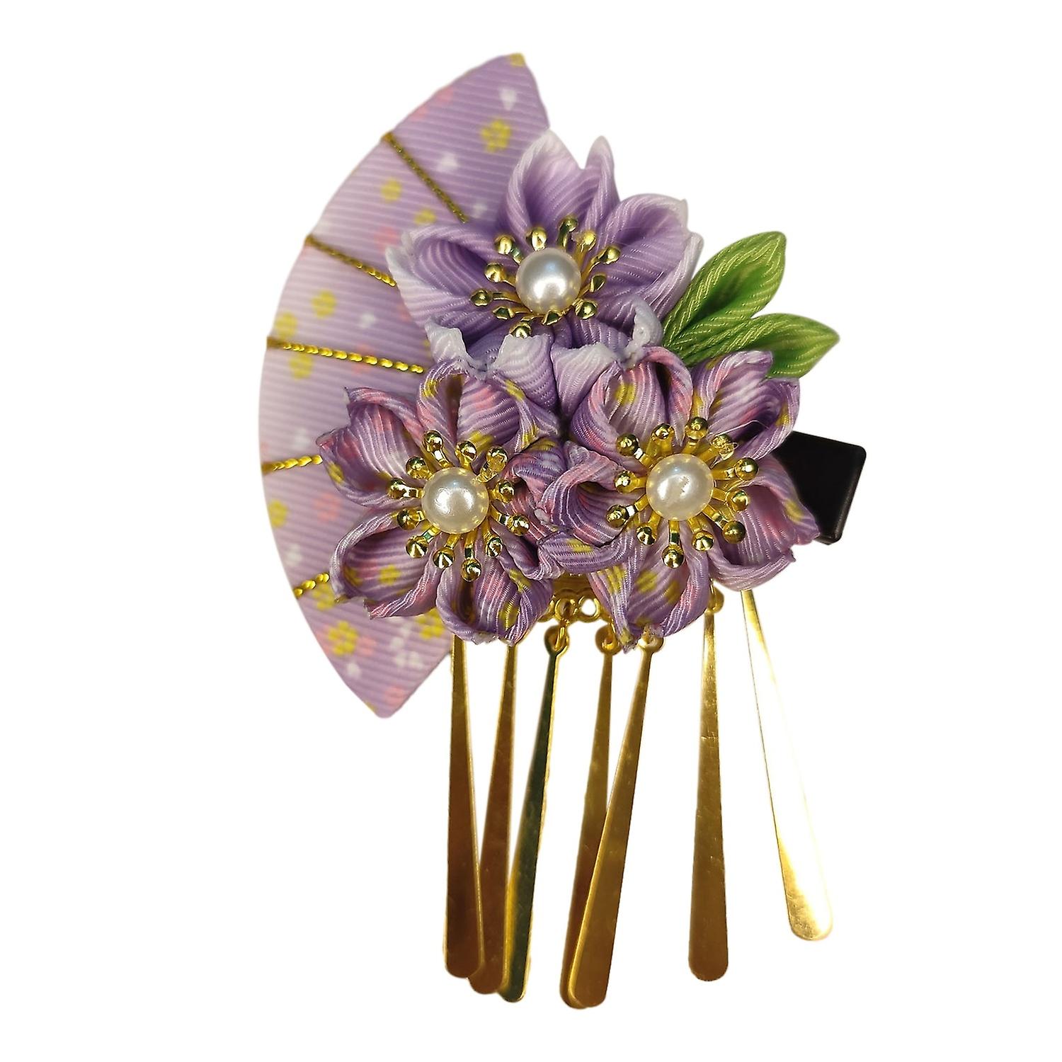 Women Hairpin Faux Pearl Fake Flower Fan Decor Anti-slip Decorative Japanese Traditional Dress