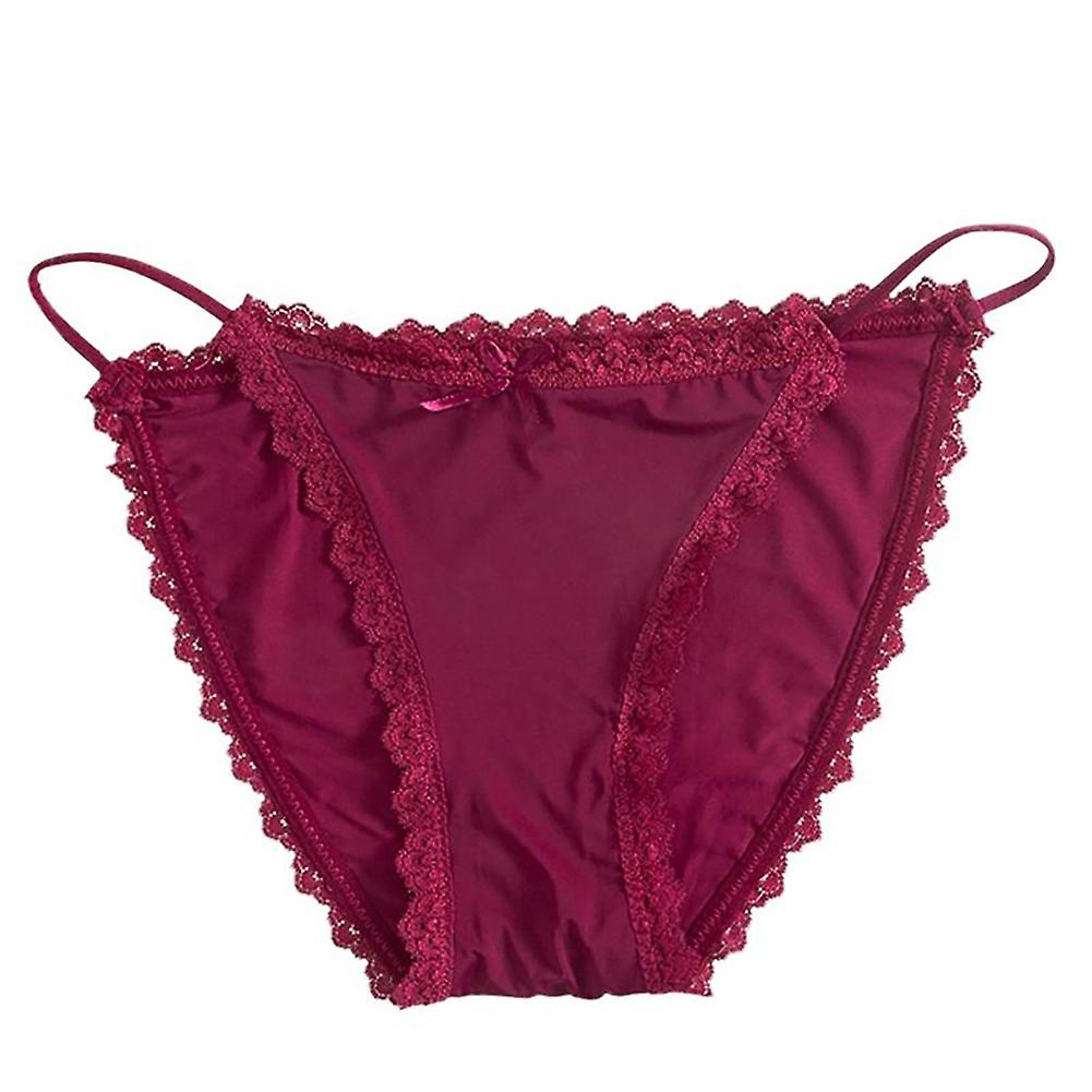 Women Sexy Ice Silk Lace Trim Strap Breathable Panty Briefs