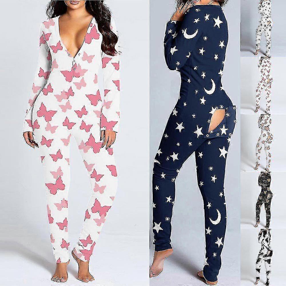 Women Sexy Jumpsuit Pajamas Butt Bum Open Flap Bodysuit Loungewear Nightwear