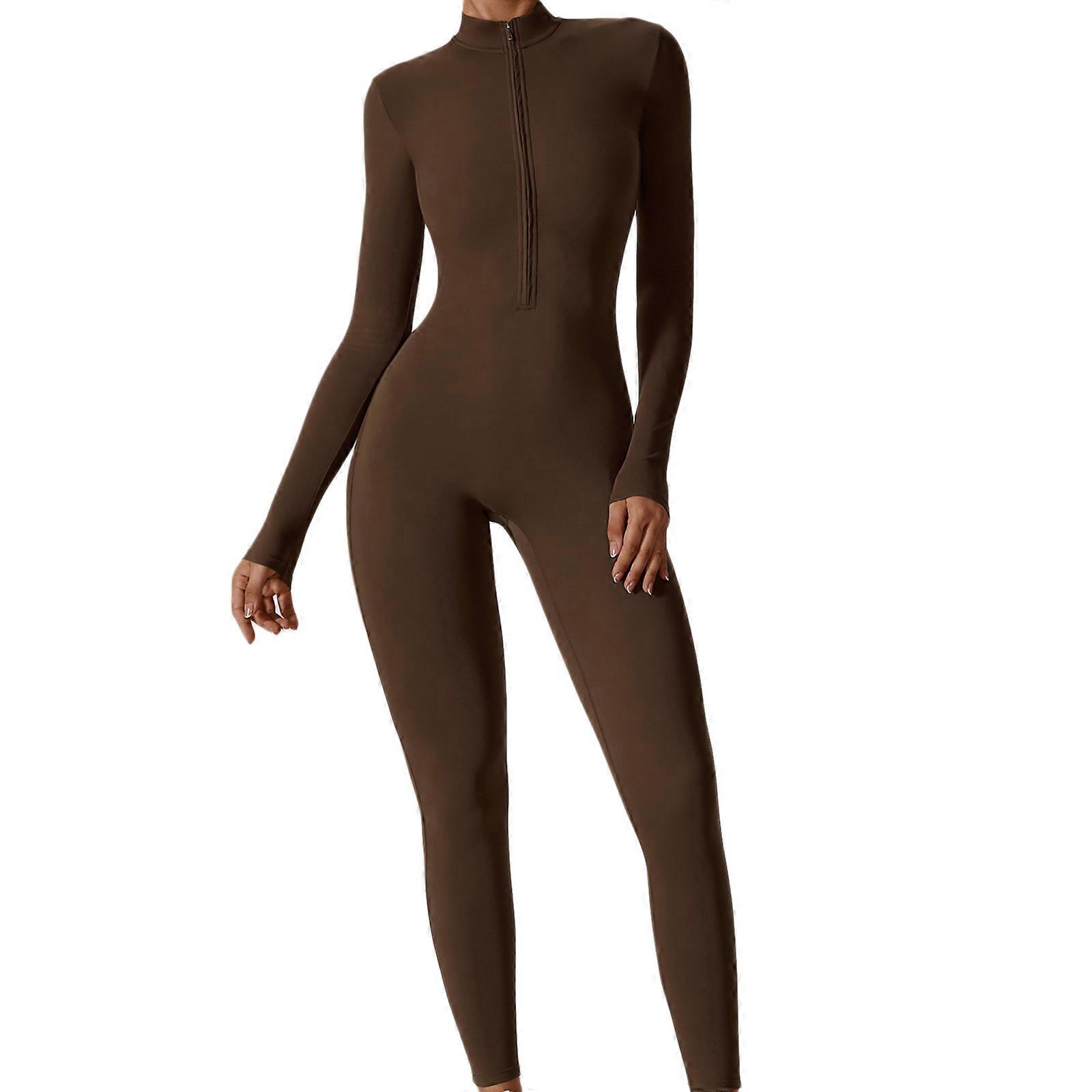 Womens Sexy Bodycon Jumpsuit Long Sleeve Tracksuit Zipper OnePiece Romper Yoga Outfits Clubwear Sports Overalls Jiao Cha Ka XL