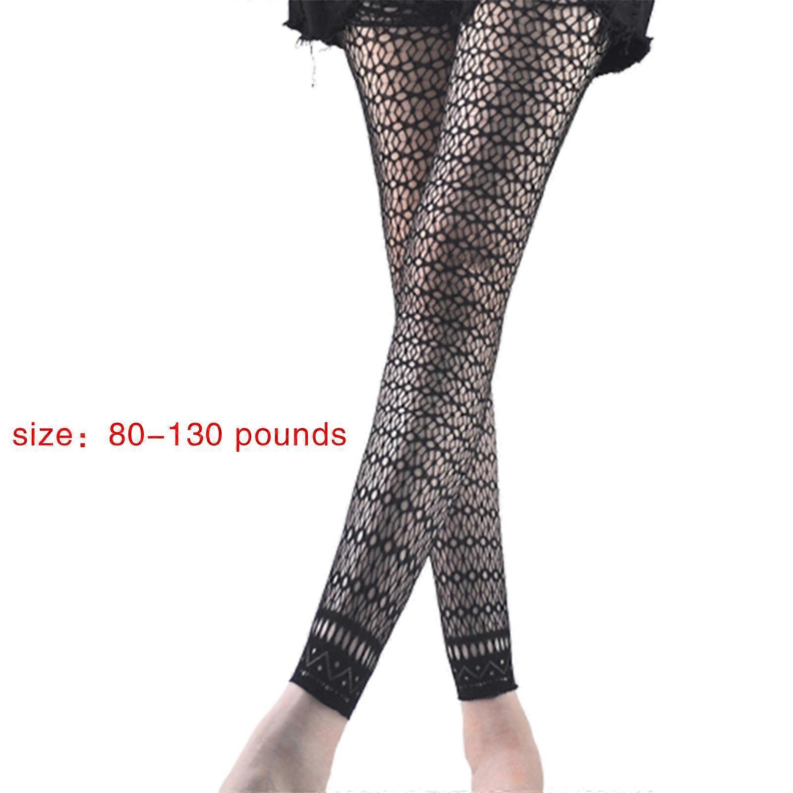 Women Sexy High Waist Fishnet Footless Leggings Flower Jacquard Patterned Mesh Net Tights Black Ankle Length Pantyhose Stockings Clubwear 9