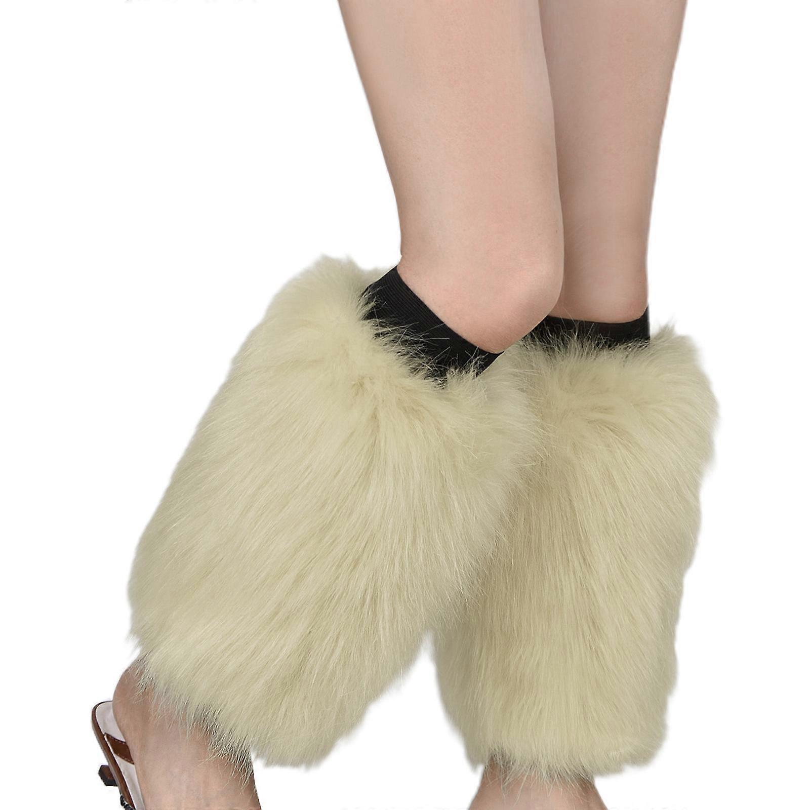 Women Sexy Furry Leg Warmers Winter Solid Color Faux Fur Plush Elasticity Boot Cuffs Calf Length Socks Party Costume Yellow