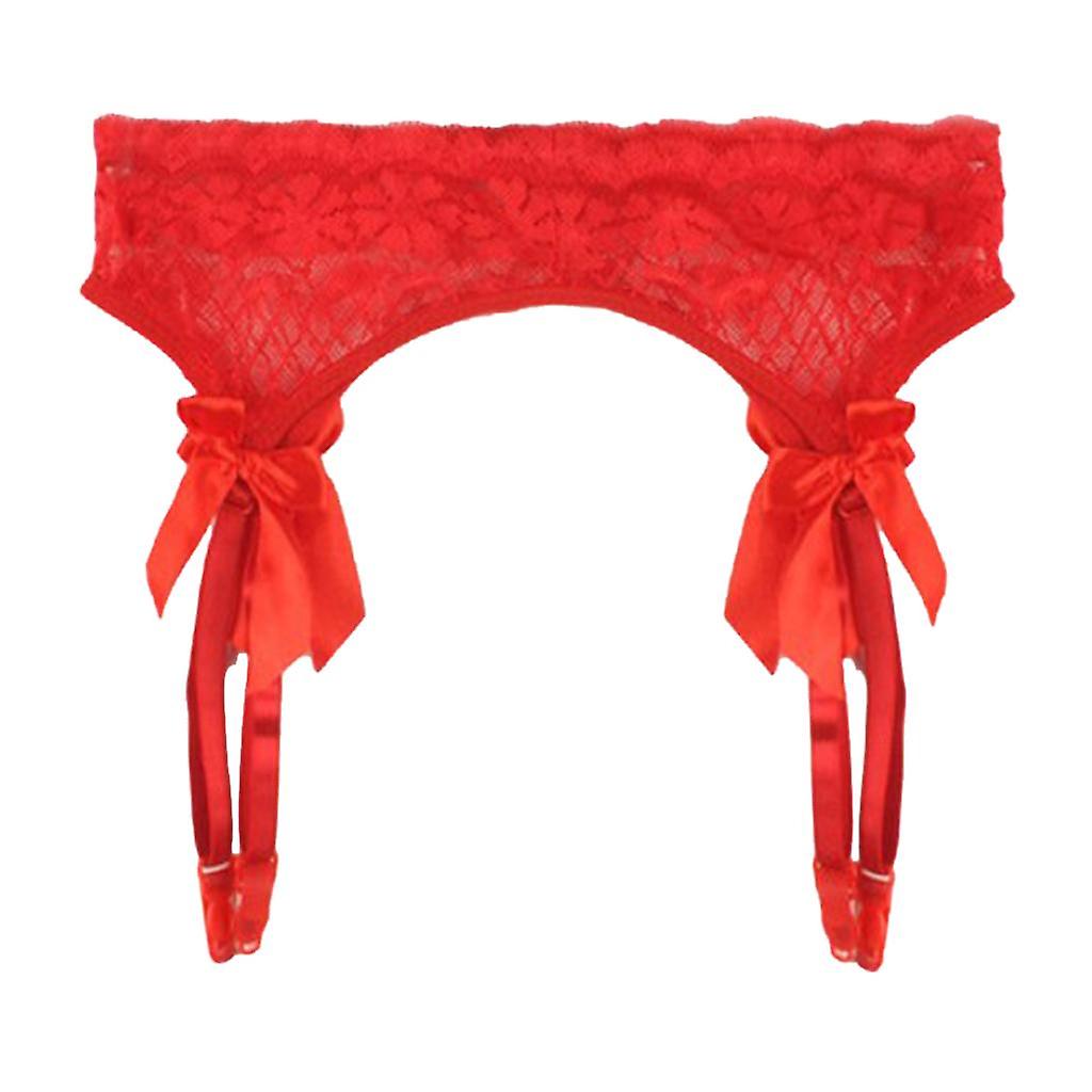 Women Sexy Garter Belt Strap Lace Bow Suspender Belt Dance Clubwear Red