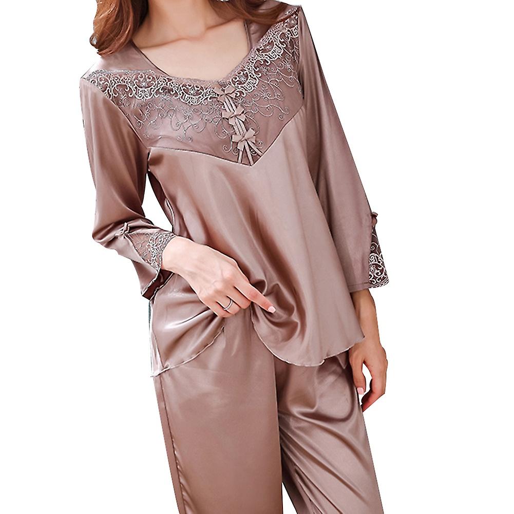 Women Sexy Long Sleeve Lace Floral Embroidery Top Pants Sleepwear Homewear Set