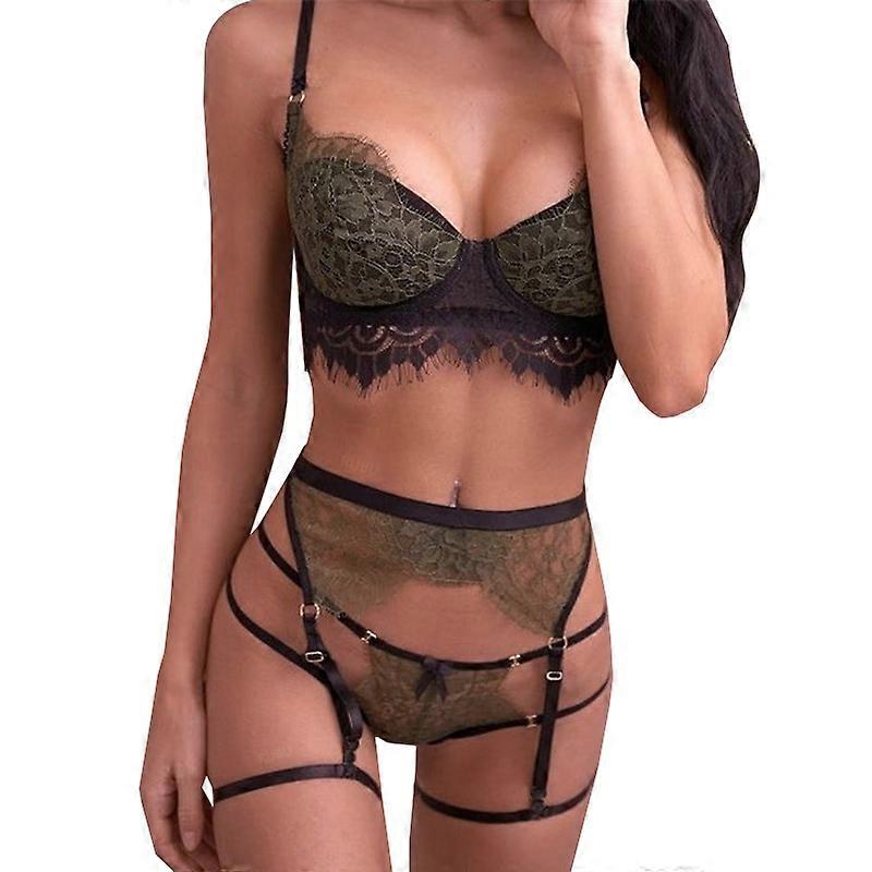 Women Sexy Lace Lingerie Set Babydoll Underwear Bra Thong Garter Nightwear Sleepwear Sleepwear