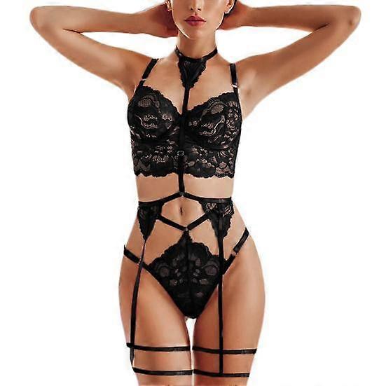 Women Sexy Lace Splicing Underwear Dress Thigh Strap Bodysuit Nightwear Set