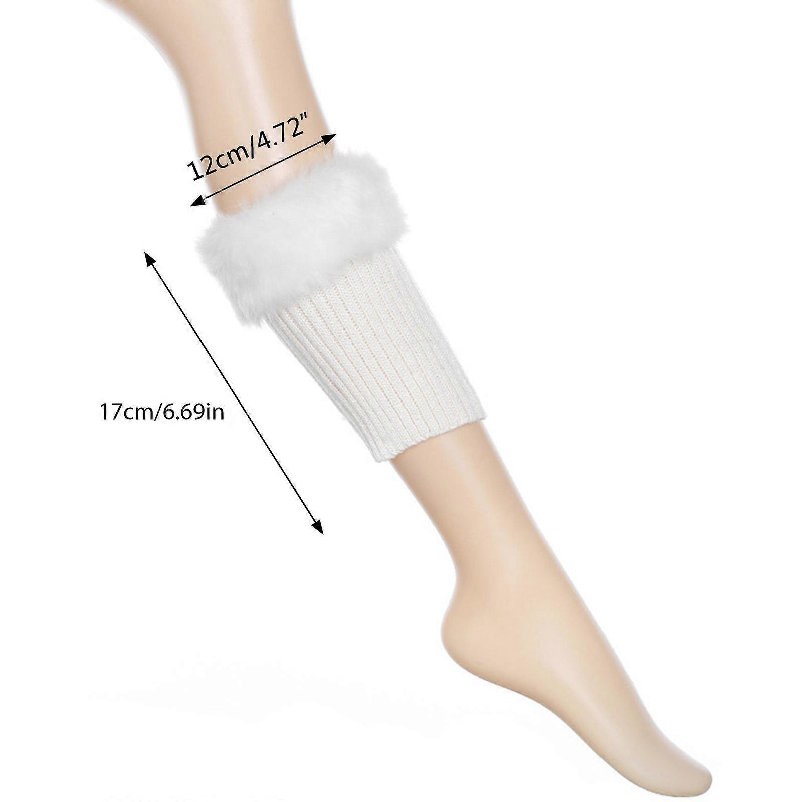 Women Crochet Knit Faux Fur Trim Leg Warmers Short Furry Fuzzy Leg Cuffs Foot Cover Leg Sleeve Boot Socks Burgundy