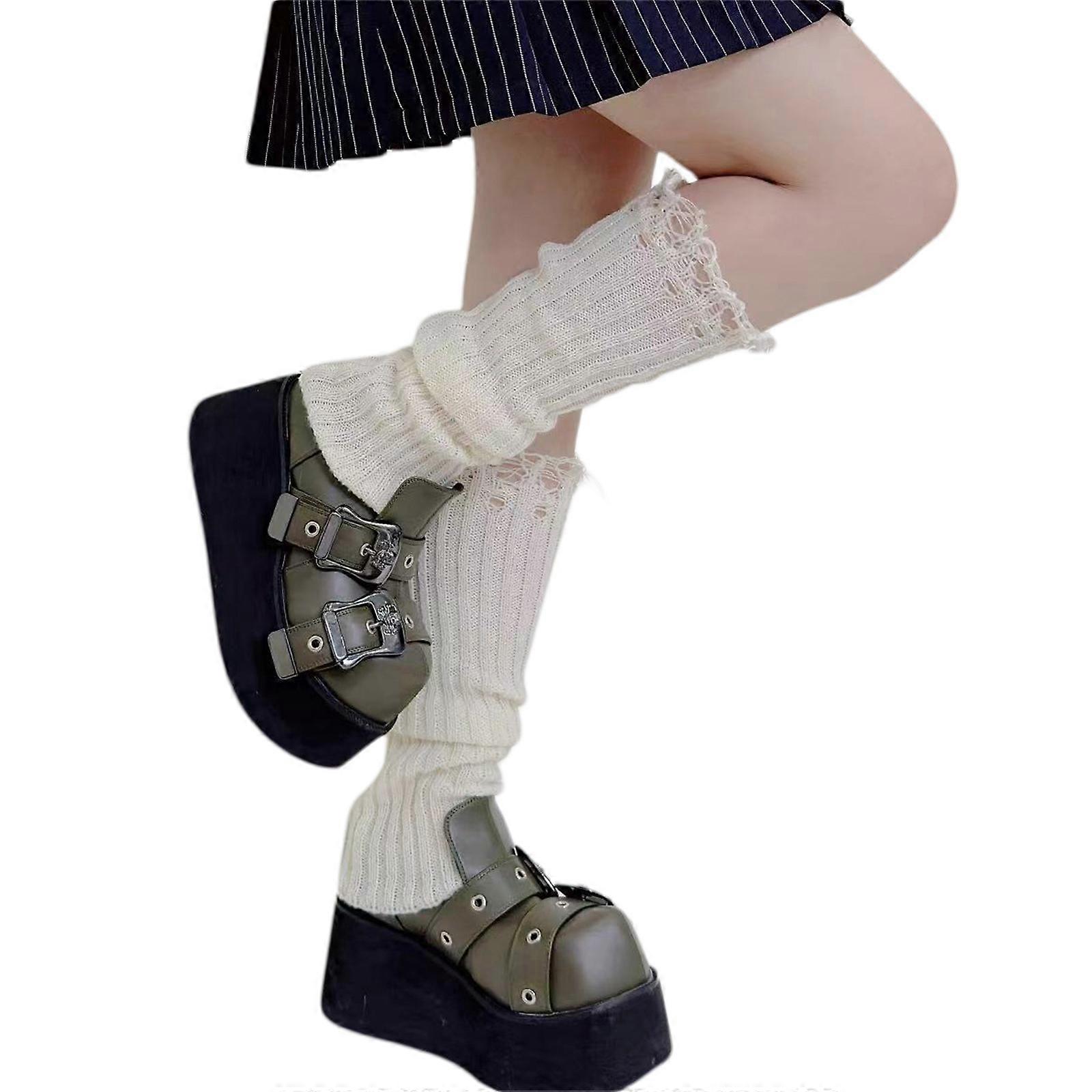 Women Knitted Winter Stocking Leg Warmers Long Socks Boot Cuffs Toppers Legging Pads Knee Brace Pads Knee Warmers Sleeve White