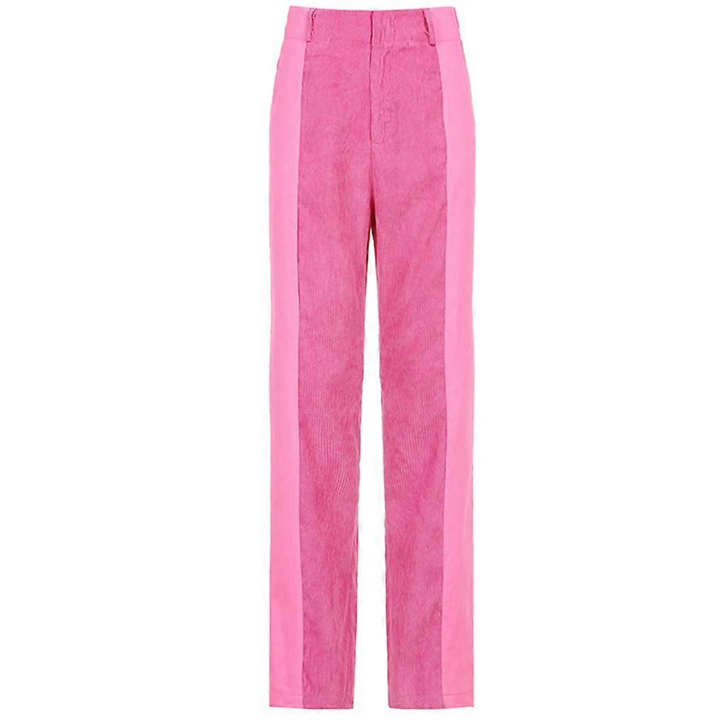 Women Autumn High Waist Velvet Patchwork Pants Harajuku 90s Bright Solid Color Straight Leg Loose Trousers with Pockets