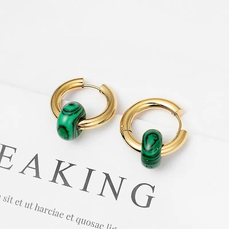 Women Earring Girl Stud Ear Drop Circle Malachite Titanium Steel Black Stone Buckle Simple Ear