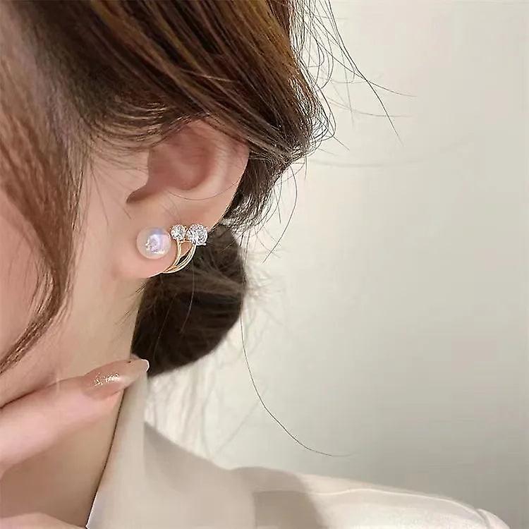 Women Earring Girl Stud Ear Drop Luxury Pink Tulip Pearl S Elegant Gold Plated Zircon Flower Front Back Party