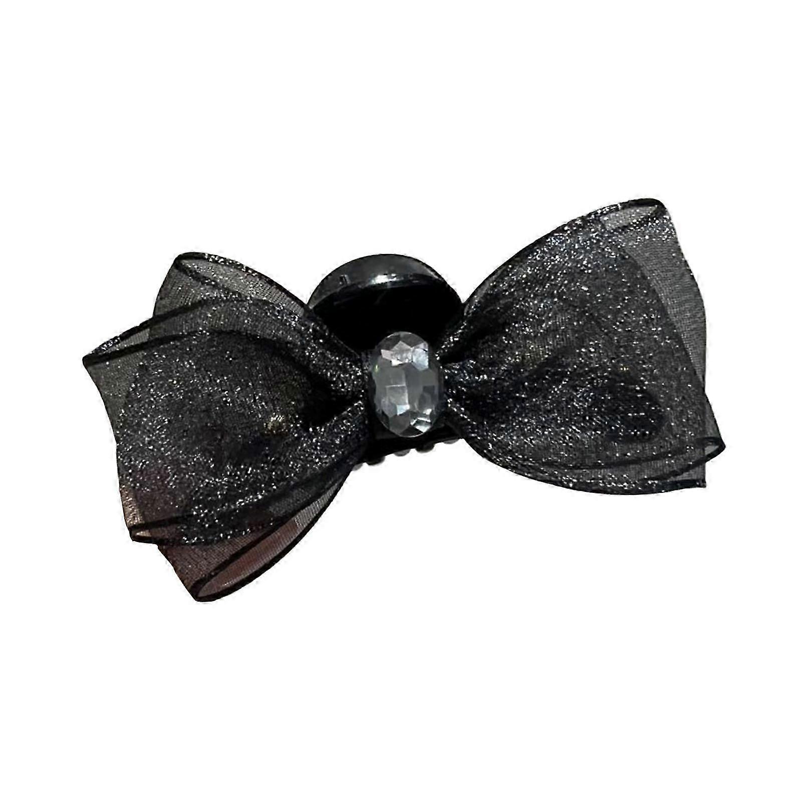 Women Bangs Claw Small Double-sided Bow-knot Decor Rhinestone Anti-slip Hair Decoration Hollow Out Elastic Spring Women Hairpin Hair Styling Tool