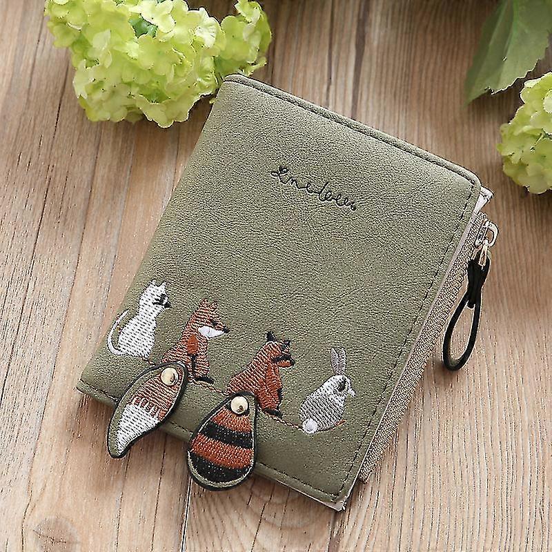 women Fox Small Purse Bifold Wallet Coin Photo Card Holder