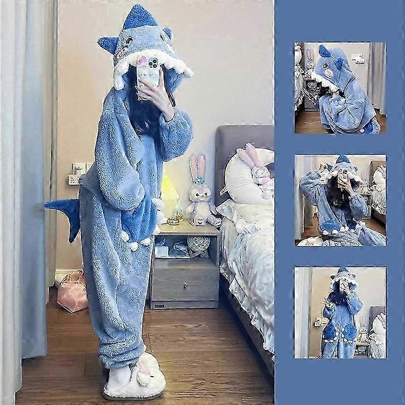 Cartoon Cute Shark Women's Hooded Sleepwear Pijama jumpsuit Female Set Cute Christmas Party Loungewear