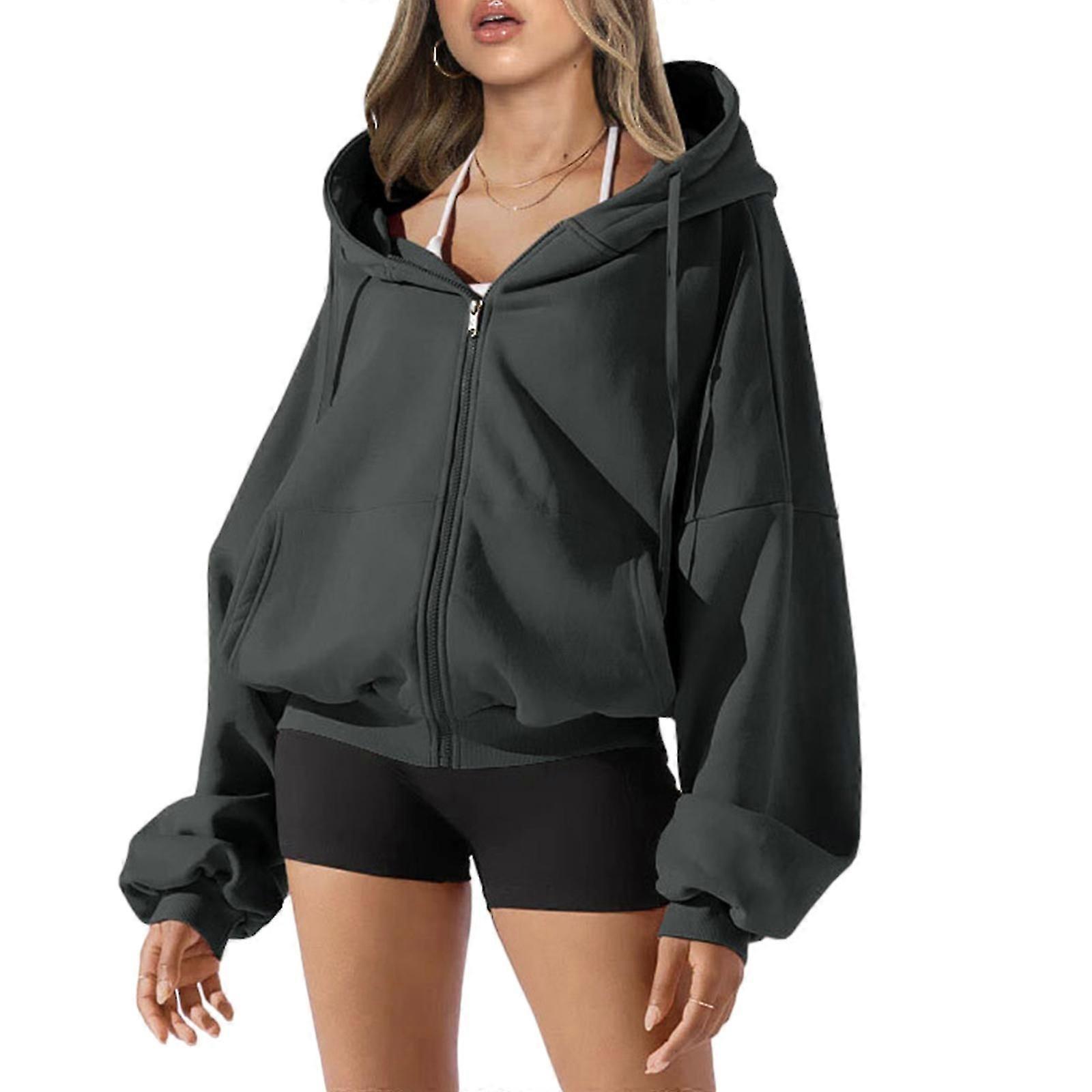 Women Fleece Lined Full Zip Up Drawstring Hoodie Sweatshirt Casual Fall Long Sleeve Hooded Jacket Top With Pockets Gray Xl