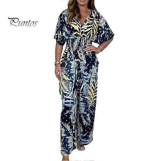 Elevate your style with our chic rompers featuring wide-legged pants for ultimate comfort. The vibrant plant print boasts high color saturation, ensuring you stand out in any crowd. The V-neck top exudes allure, while the elastic waist accentuates your curves beautifully.