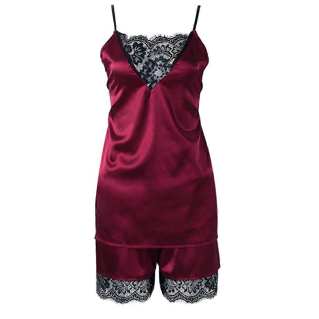 Women Floral Eyelash Lace Sleepwear for Tank Top Shorts V-Neck Pajama Lingerie S