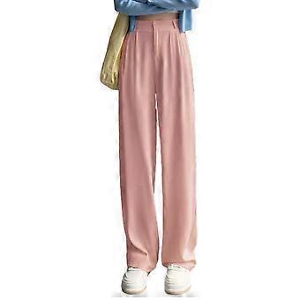 Women Solid Color Suit Pants High-Waisted Straight Wide Leg Pants Button Zipper Fly Pockets Baggy Trousers Office Wear