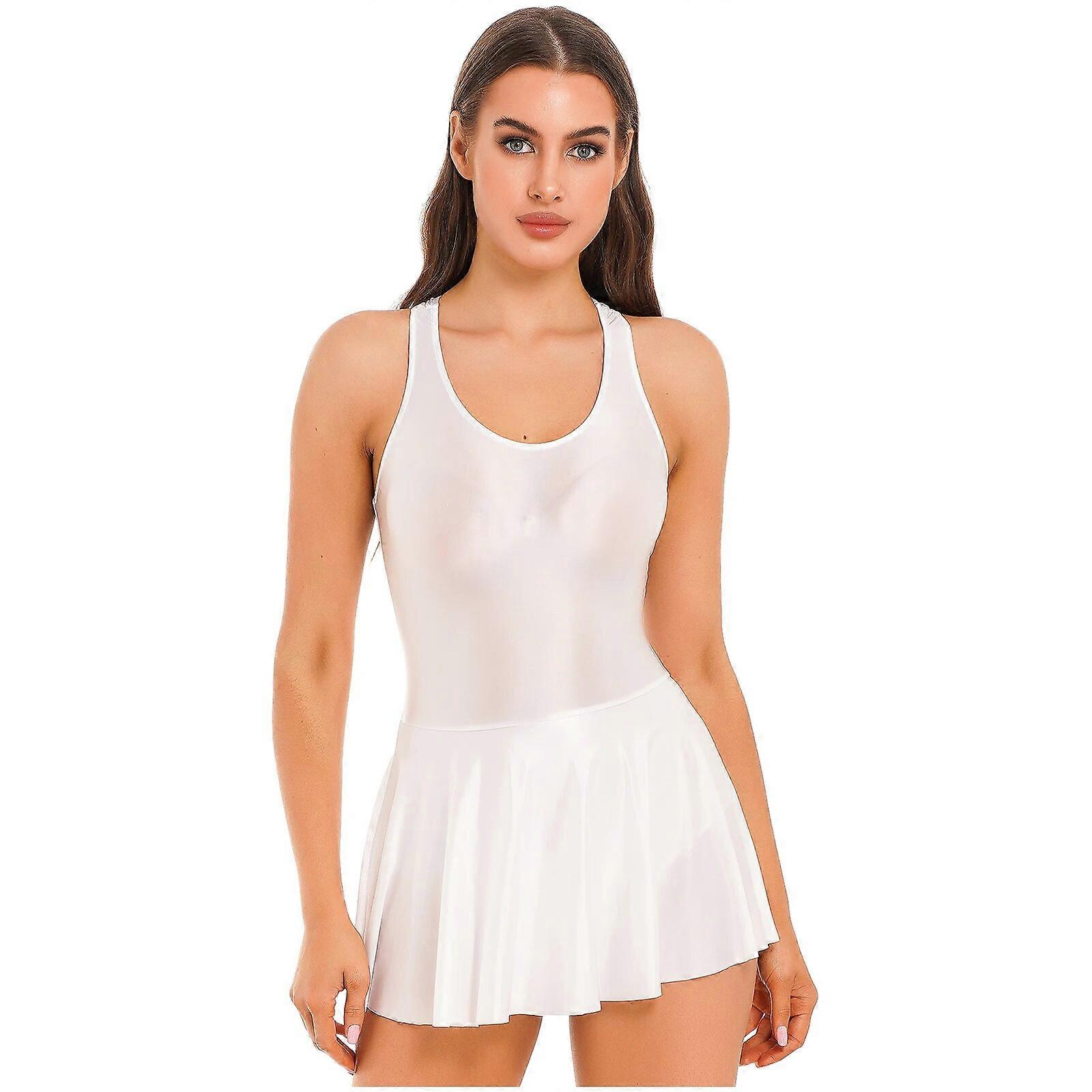 Womens U Neck Leotard Mini Dresses Summer Swimsuit Female Sleeveless Glossy Tank Dress Beach Sundress Femme Party Clubwear