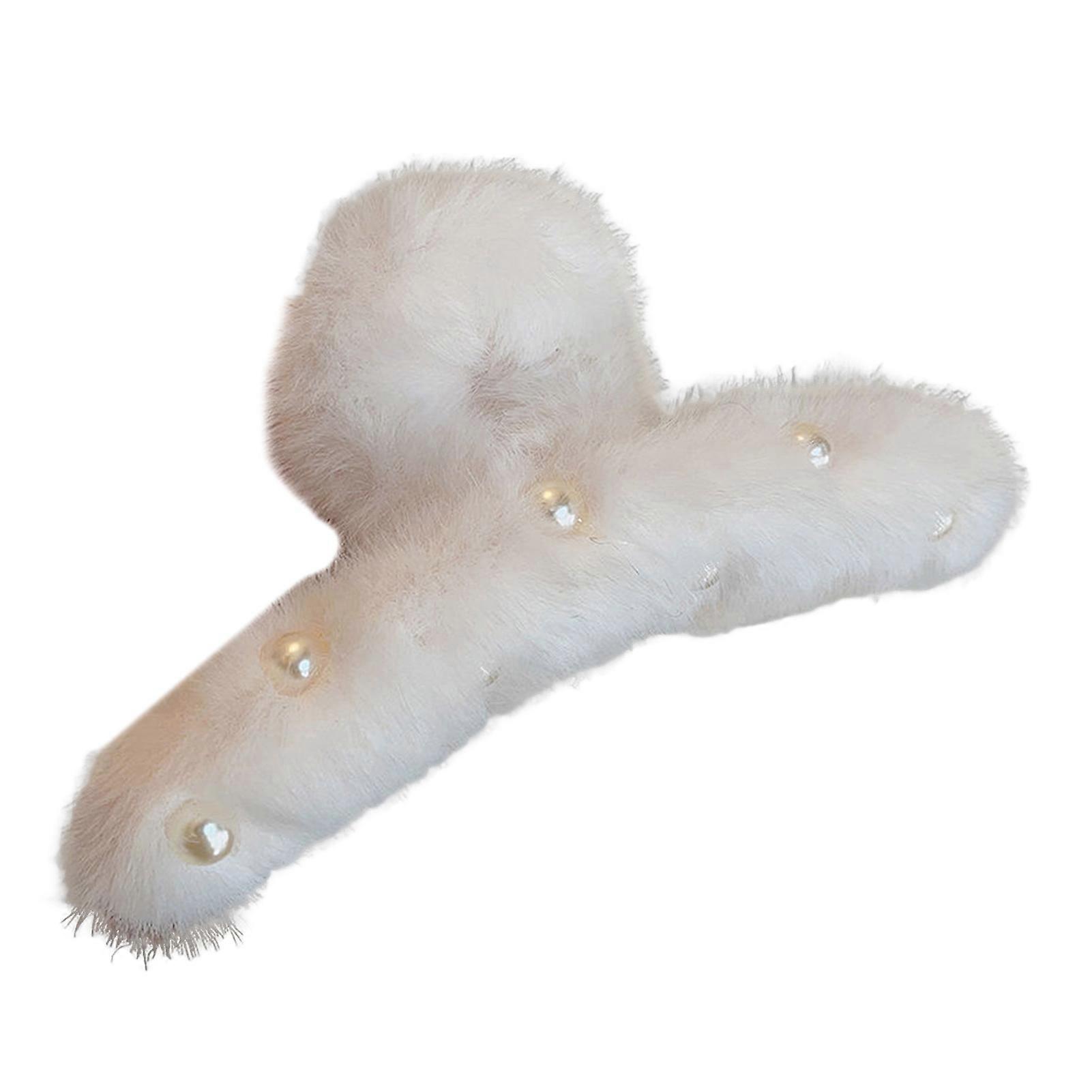 Women Hair Claw Faux Pearls Decor Plush Wrapped Hair Clip Anti-slip Teeth Back Head Hair Clamp Hair Accessories