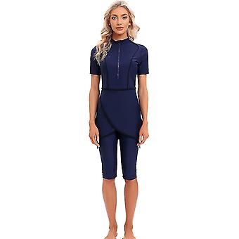 נשים צנוע בגדי ים מוסלמי מוסלמי בגד ים שרוולים קצרים רוכסן חלק עליון קדמי מכנסיים קצרים חיג'אב 3 יחידות