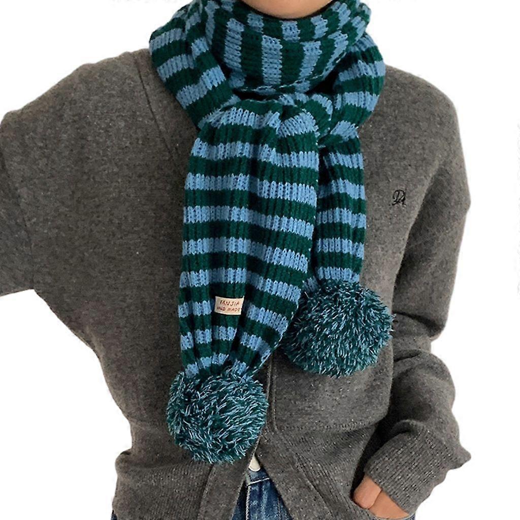 Women Striped Scarf Subculture Neckerchief Y2k Photography Scarf with Pompoms