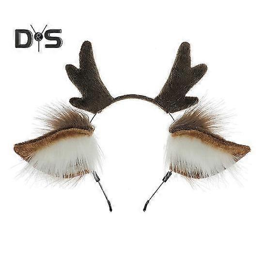 Women Plush Christmas Antler Headband Handmade 3D Ear Decor Hair Hoop Cosplay Party Hair Accessories