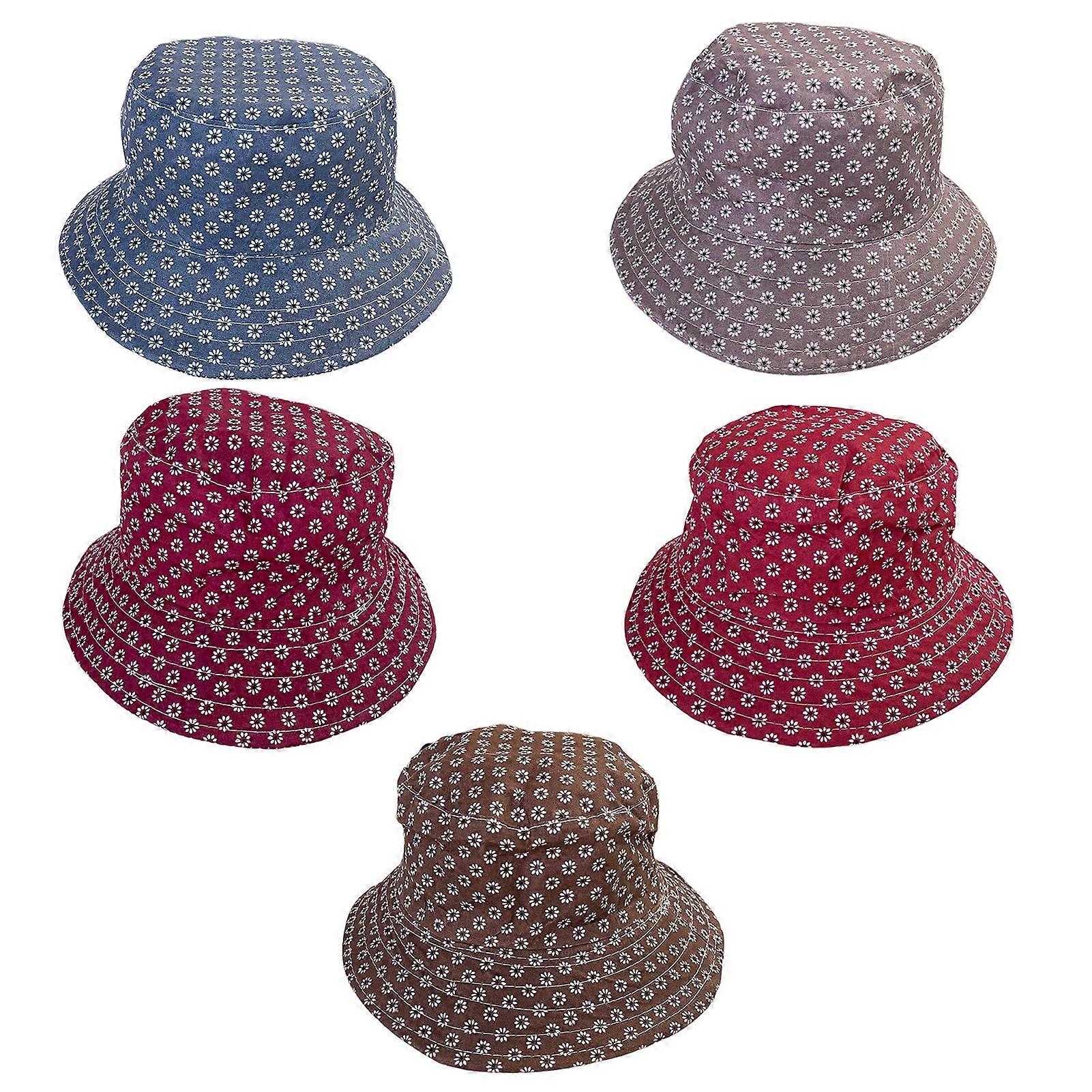 Women Summer Bucket Hat Floral Print Large Brim Sunscreen Hat Elastic Band Anti-UV Outdoor Tea Fisherman Hat QingHai