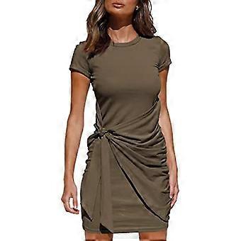 נשים קיץ חולצת טריקו שמלה מזדמנים שרוול קצר לעטוף bodycon מחוספס עניבה מותניים מיני שמלות מיני