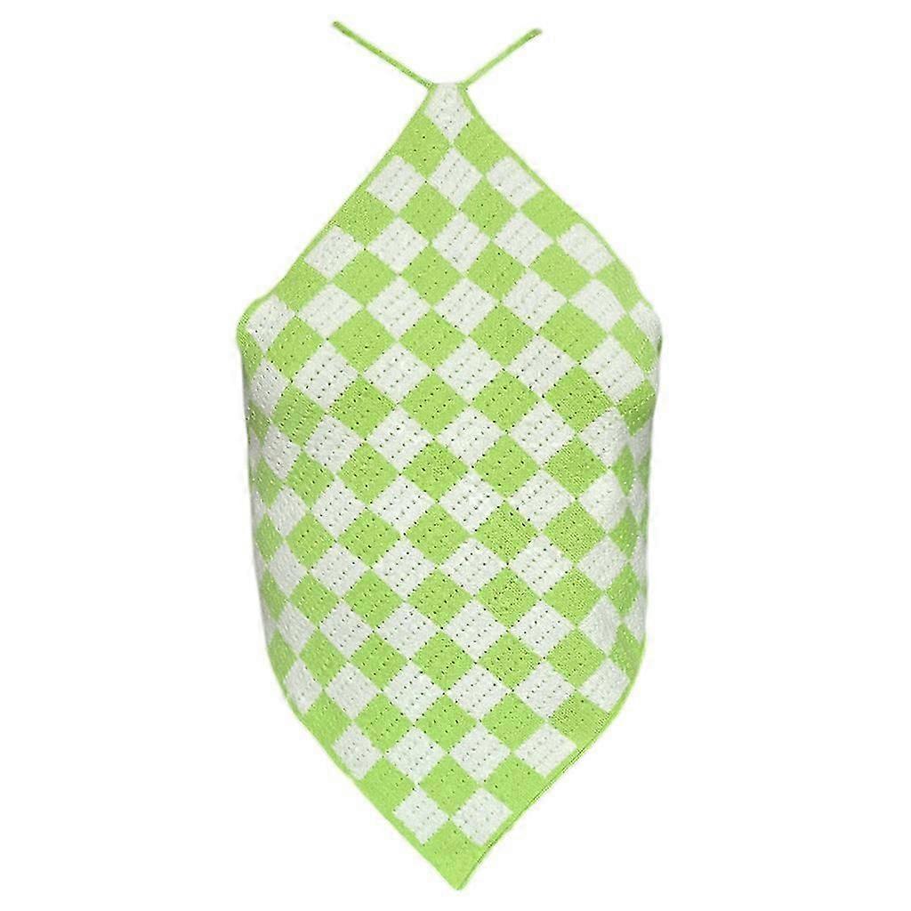 Women Summer Sexy Halter Backless Crop Top Mutlicolor Argyle Plaid Knitted Camisole Harajuku Crochet Slim Fit Irregular Hem Vest Beach Clubwear Pink
