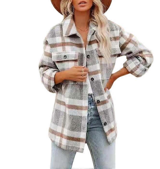 Women Classic Plaid Button Down Shirts Long Sleeve Flannel Lapel Jackets Autunm And Winter Casual Loose Woolen Cardigan Coat