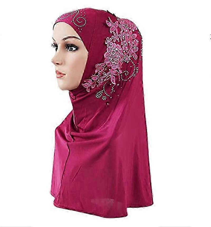 Womens Ice Silk Muslim Hijab Lace Applique Head Wrap Shawl With Rhinestones