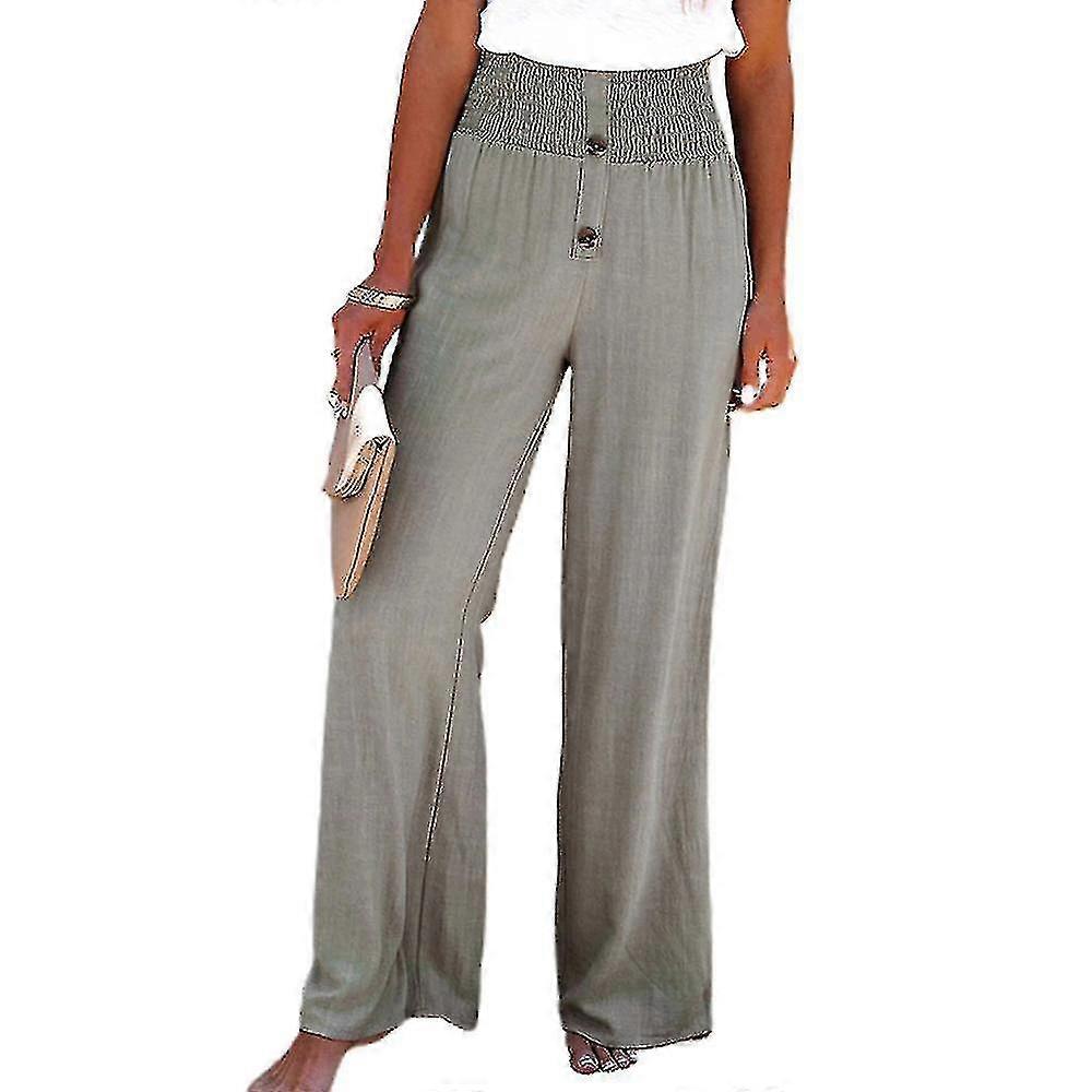 Women Plain Button Elastic Waist Pants Wide Leg Casual Loose Yoga Sports Trousers