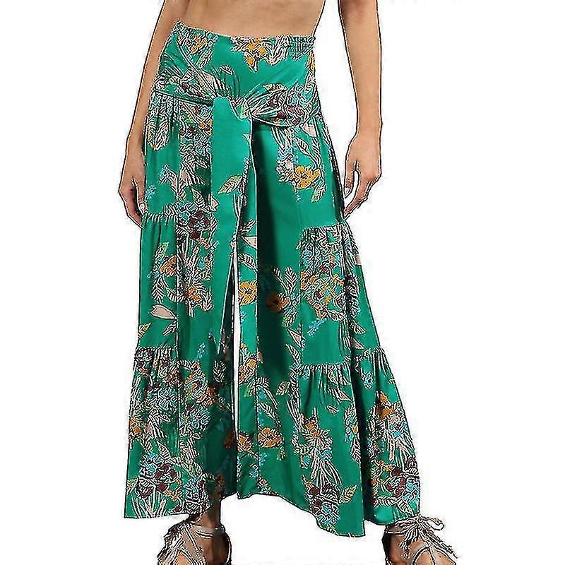 Women Ruched Boho Bottoms Casual Lace Up Loungewear Summer Baggy Ruffle Palazzo Pants