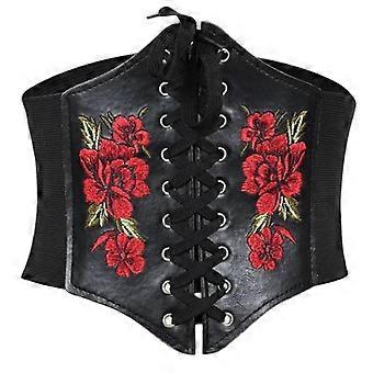 Wide Women Elastic Nylon Corset Belts Black PU Leather Slim Body Lace Up High Waist Girdle Belt Female Lady Cummerbunds