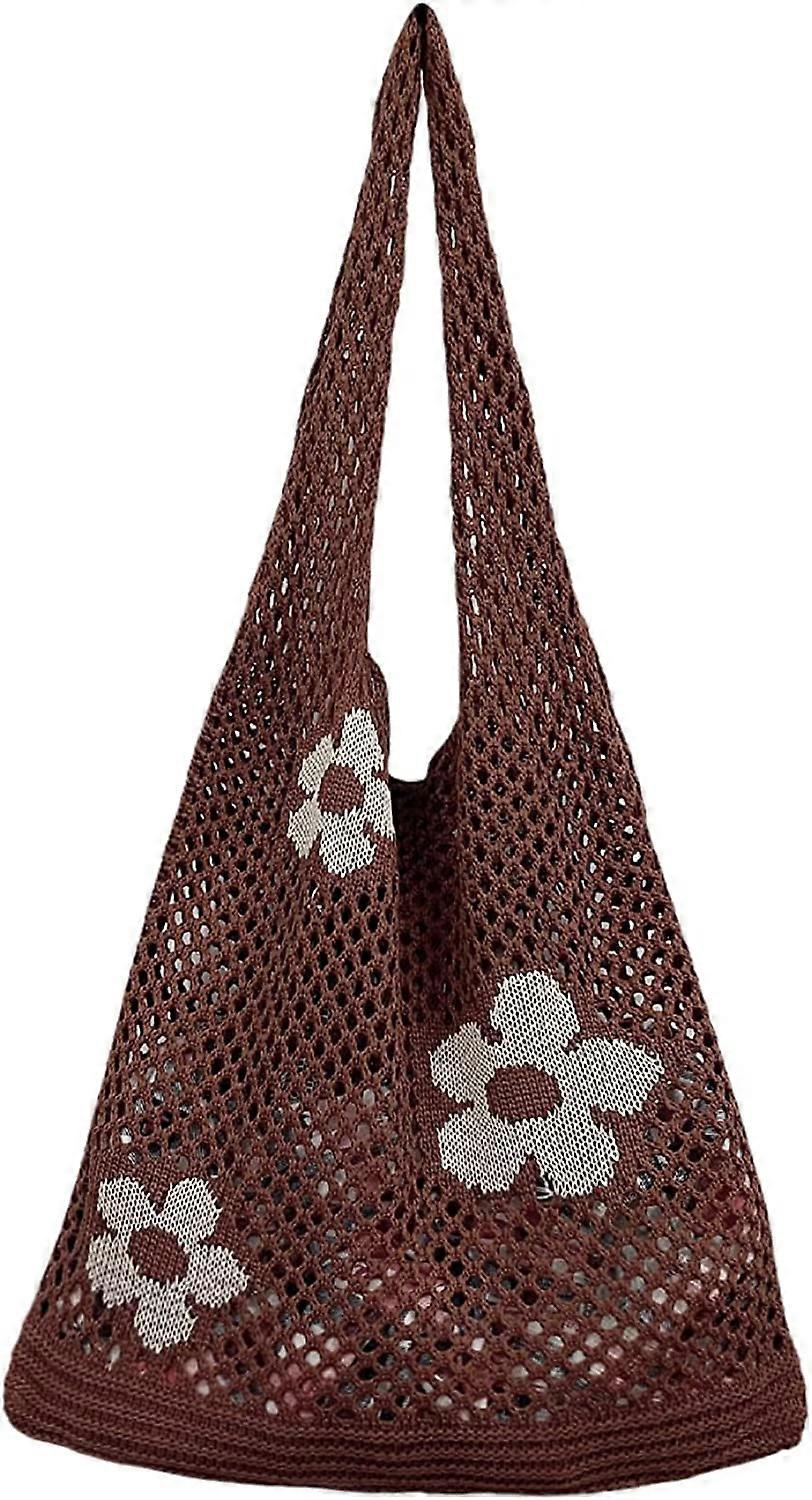 Women Retro Summer Hobo Bag Mesh Hollow Tote Bag Trendy Flower Knitted Shoulder Bags Casual Beach Purse